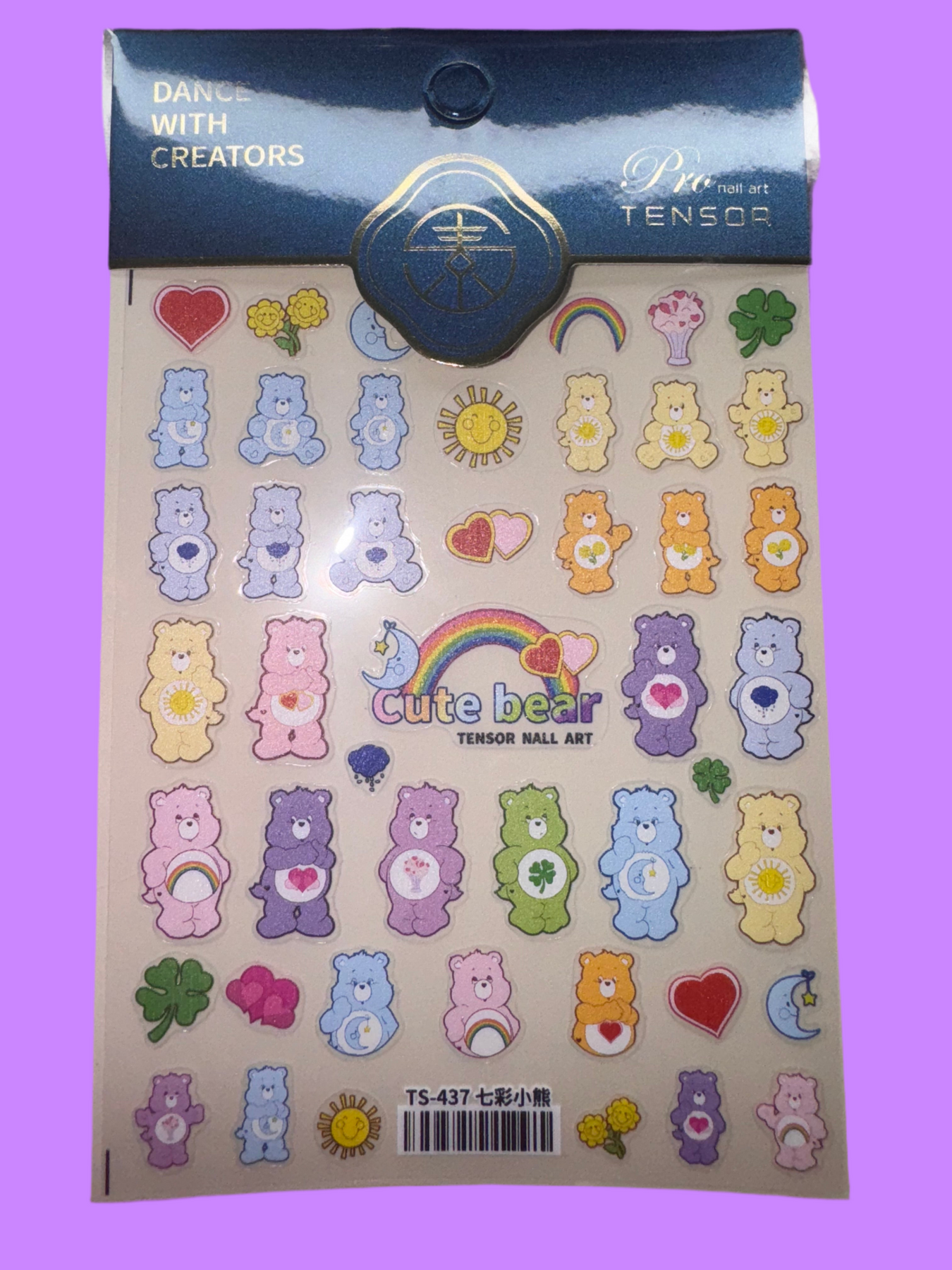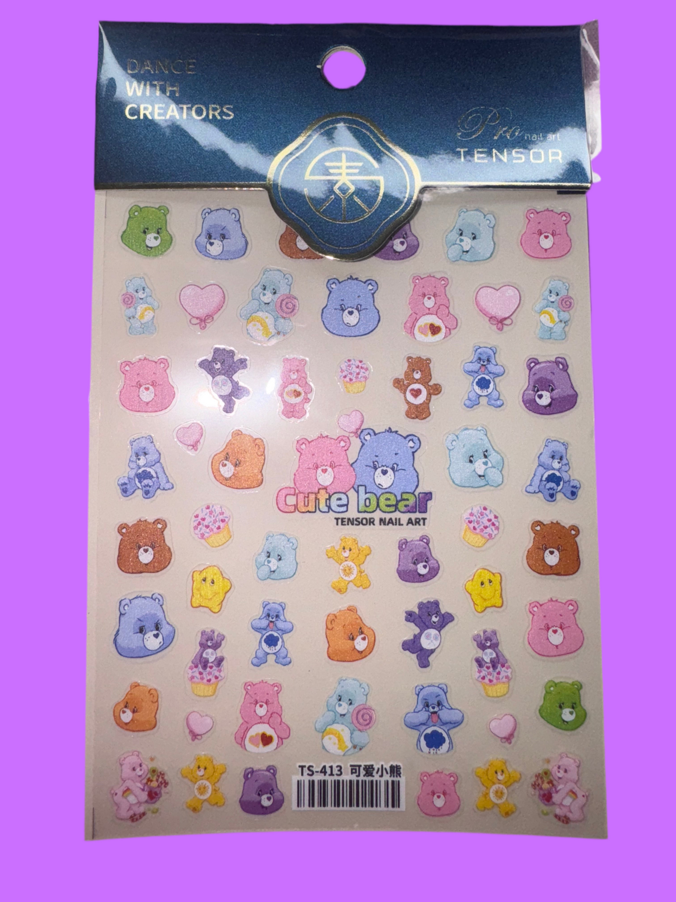 Care Bear nail stickers with colorful character designs for playful manicures.