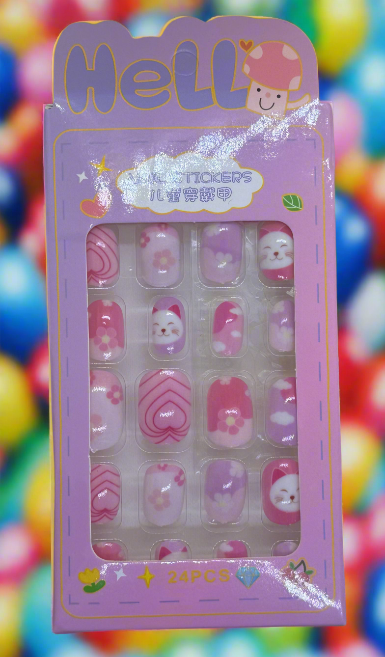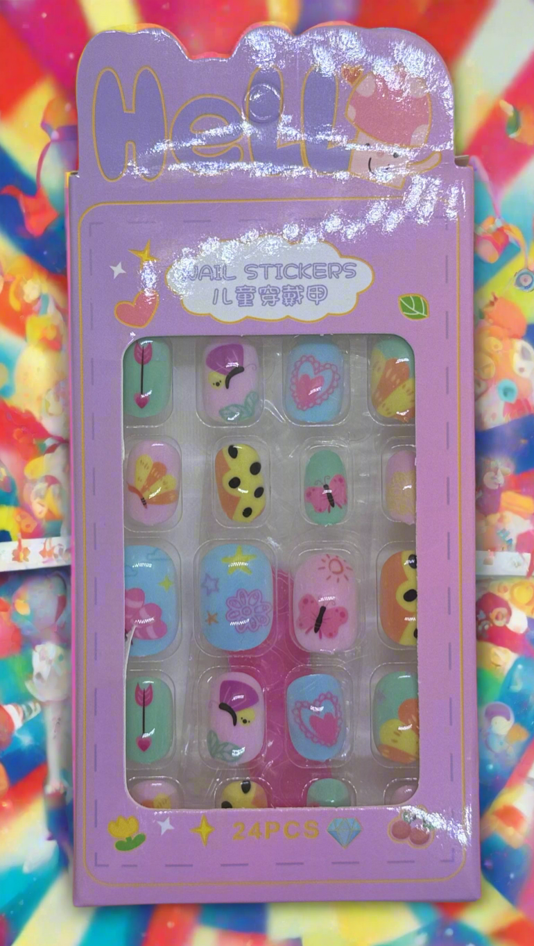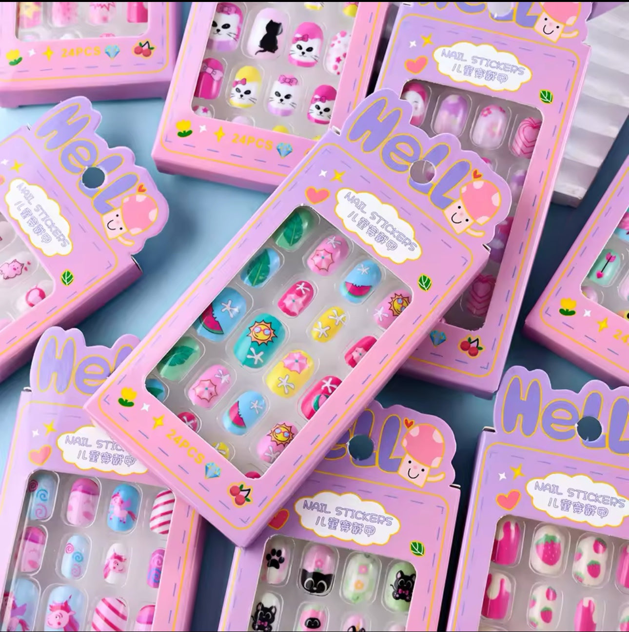 Get ready to level up your Mini Divas nail game with our Press-ons kit! This 24-piece set of Press-ons is perfect for the little fashionista in your life. No more messy polish, just Press- ons and go! Say goodbye to salon trips and hello to hassle-free Press-ons nail fun!  Each Press-ons box comes with a mini file and jelly stickers. Press-ons and go!