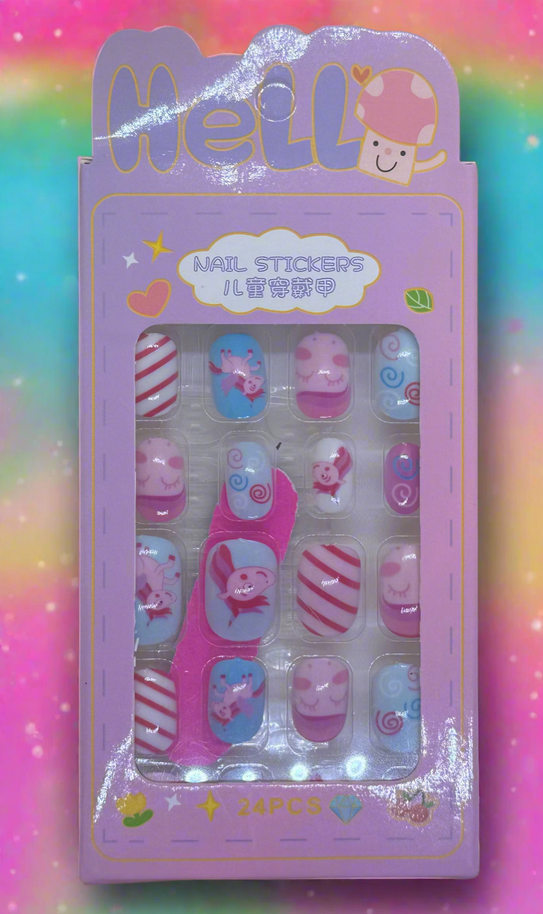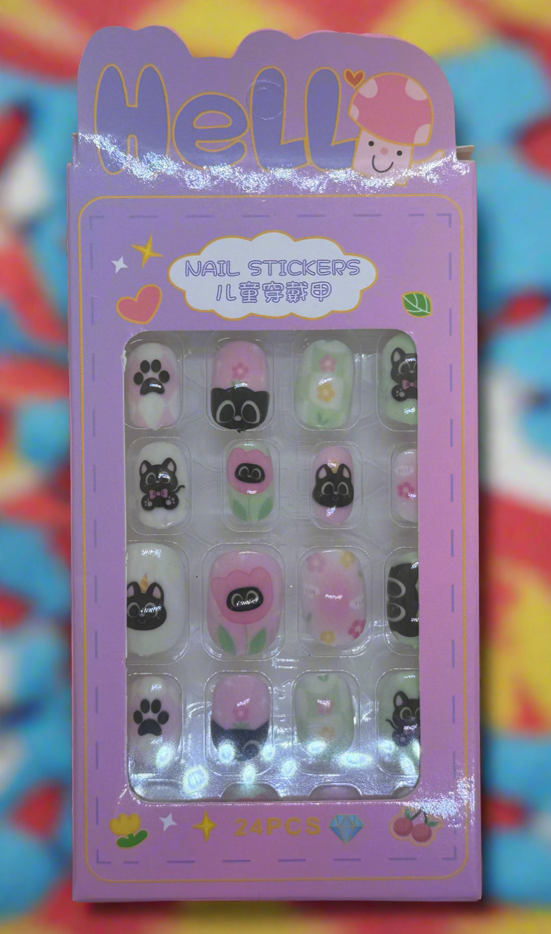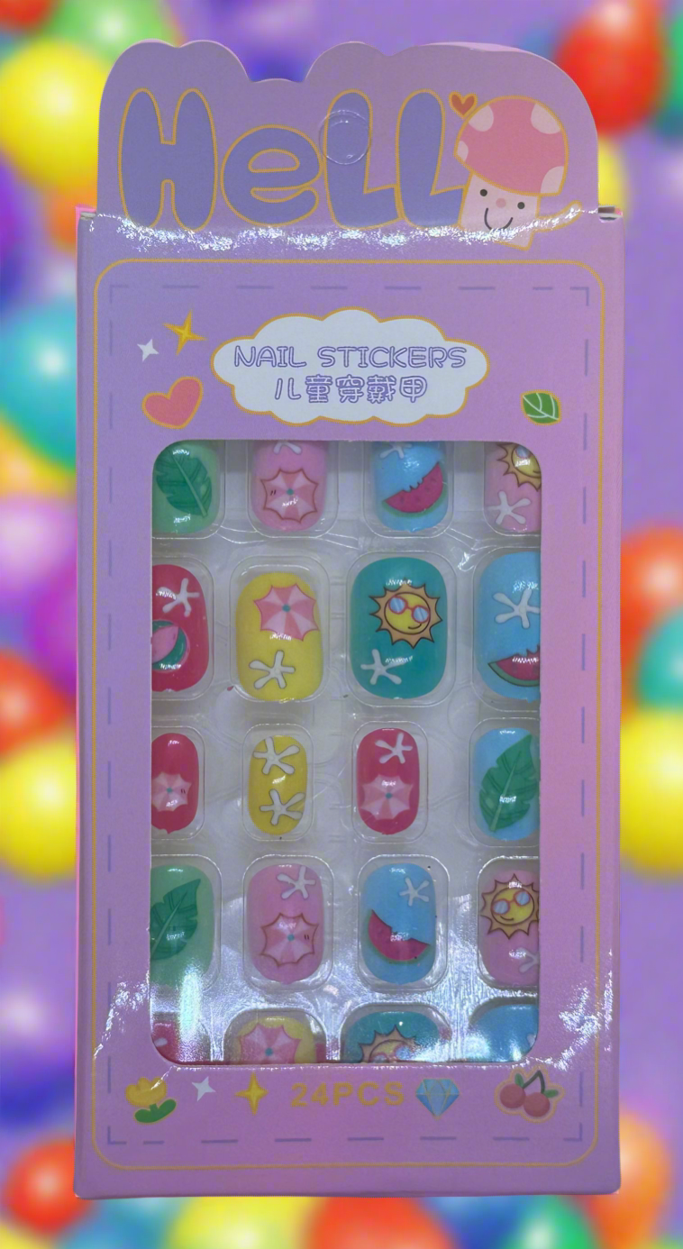 Get ready to level up your Mini Divas nail game with our Press-ons kit! This 24-piece set of Press-ons is perfect for the little fashionista in your life. No more messy polish, just Press- ons and go! Say goodbye to salon trips and hello to hassle-free Press-ons nail fun!  Each Press-ons box comes with a mini file and jelly stickers. Press-ons and go!
