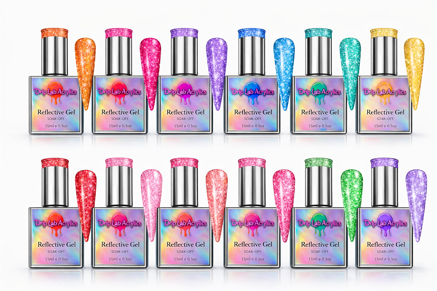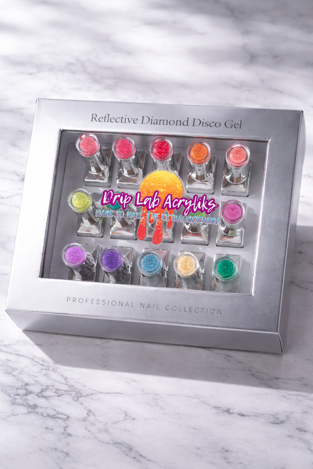 The Drip Lab presents our first Glitter Gel Nail Polish Collection - The Disco Drip.  Add some sparkle to your nails with our Glitter Nail Gel Polish Collection! With 12 dazzling colors, your nails will shine and reflect light for a unique and eye-catching look. Our Glitter Gel Nail Polish Collection is Perfect for parties, events, or everyday wear. This Glitter Gel Nail Polish Collection will make your nails stand out in style. When it comes to diamond shine, our Glitter Gel Nail Polish Collection does just that. (Nail art game strong!)